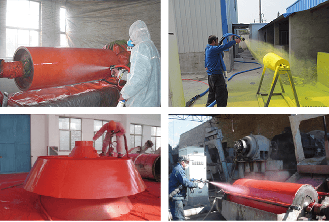 采用聚脲專用的高溫、高壓噴涂設(shè)備噴涂